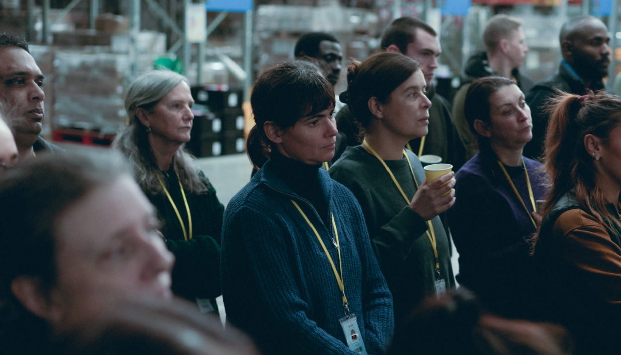 Aurora, jeune immigrée portugaise, travaille en Écosse comme préparatrice de commandes dans un grand entrepôt, emploi déshumanisé et solitaire qui lui permet à peine de se nourrir. Elle n’a que peu de contacts avec ses collègues qui rêvent comme elle d’un autre travail. Elle occupe une chambre dans une colocation où les gens se croisent brièvement à la cuisine. Le film baigne dans des intérieurs gris et froids, entrecoupés de rouge : les flashs à répétition de son pistolet à code-barre, une lueur dans sa petite chambre anonyme, ou une sortie de nuit dans un bar éclairé. Le véritable compagnon d’Aurora est son téléphone portable. Quelques échappées se présentent, qui semblent difficiles à saisir pour elle tant on la sent « vidée » de son énergie vitale. On aurait parfois envie de la secouer pour la réveiller. La séquence d’entretien pour une embauche éventuelle ailleurs est emblématique et magistrale. Un monde qui existe et qui fait froid dans le dos.